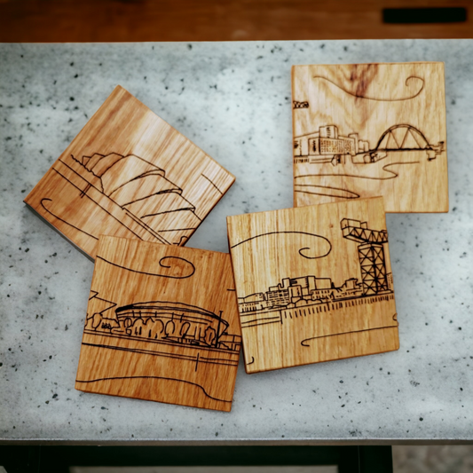 Scottish Sustainable Oak Coaster Set - Glasgow Gigs