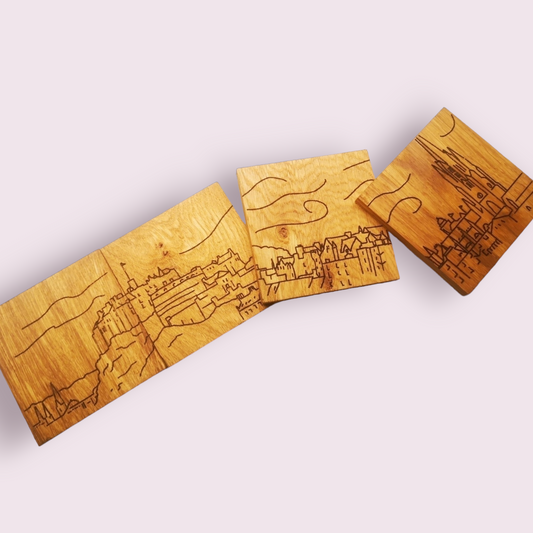 Scottish Sustainable Oak Coaster Set: Edinburgh is Great design